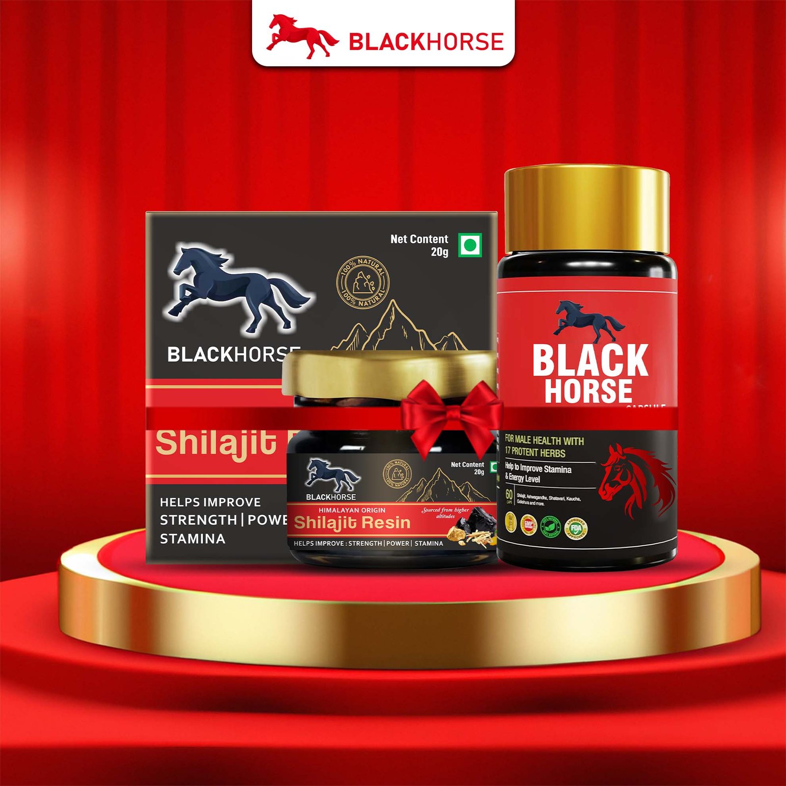 Blackhorse Shilajit Capsule and Resin are powerful Ayurvedic supplements made from purified, premium-grade Shilajit sourced from the Himalayan mountains. Rich in fulvic acid and essential minerals, they help boost stamina, energy, immunity, and overall male vitality. The capsules offer convenient daily use, while the resin provides a raw, potent form for maximum absorption and results. Ideal for enhancing physical performance, mental clarity, and hormonal balance, Blackhorse Shilajit supports a healthier, more active lifestyle – naturally. No chemicals, no additives – just pure, natural strength.